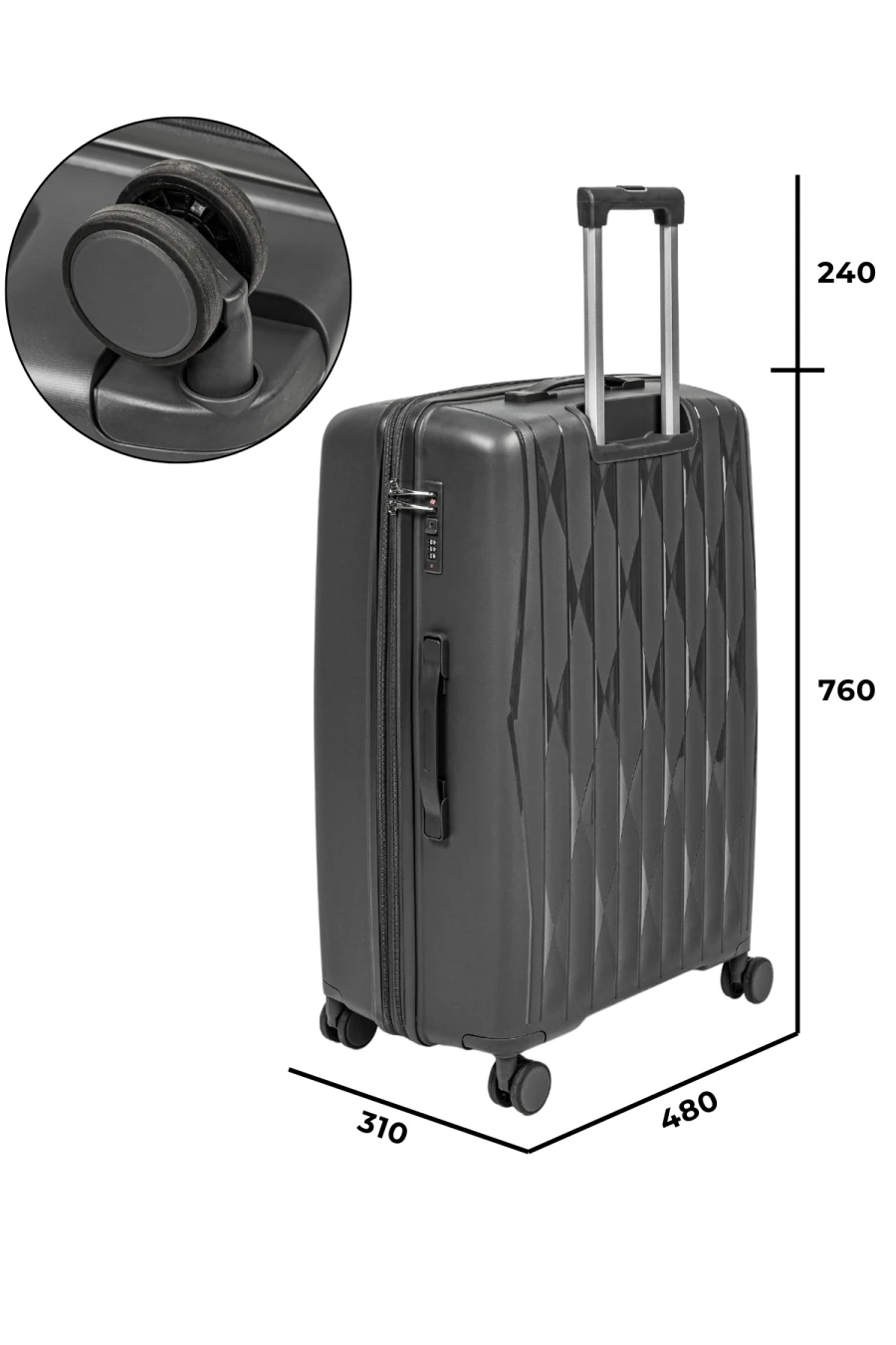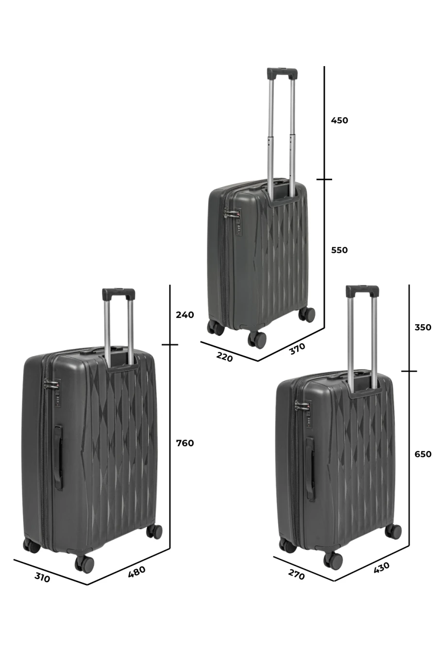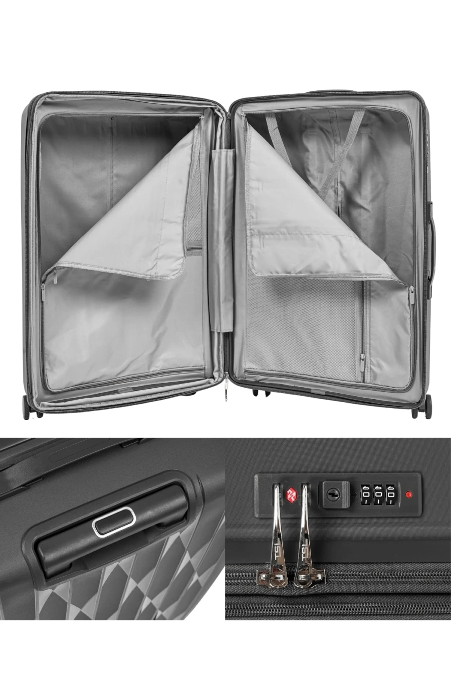 Комплект из трех чемоданов "TSL"-TOURISSTERLUGGAGE всех размеров из ударопрочного полипропилена отличаются от других своим функциональным наполнением внутри с двумя разделителями на молнии что при раскрывании не позволит вещам вываливаться из отделений. Левое отделение имеет текстильный ремень для стягивания багажа. Множество карманов на правой перегородке выполняют роль органайзера- добавлено влагозащищенное отделение для документов. Выдвижная телескопическая ручка выполнена из авиационного алюминия - что придаёт высокую прочность и снижает вес чемодана. Основная молния закрывания отделений имеет 2-х рядную структуру витков пластика- что делает невозможным непроизвольное открытие чемодана во время транспортировки и перегрузки. Все чемоданы - независимо от размера имеют расширение по кругу- что добавляет 20% дополнительного пространства для ваших вещей. Закрывание чемодана осуществляется на кодовый замок с функцией TSA.