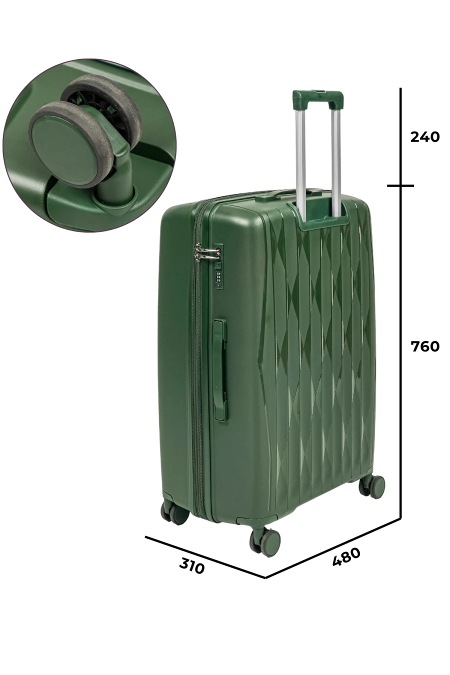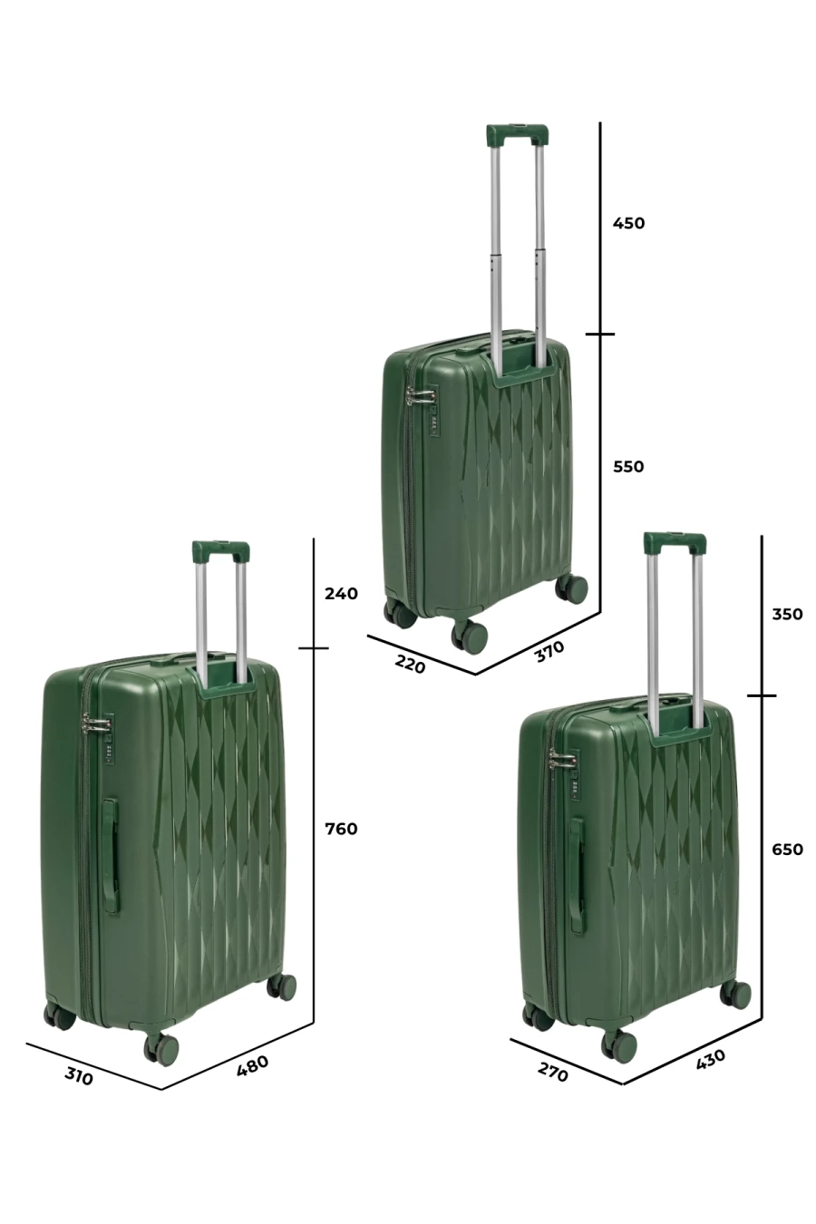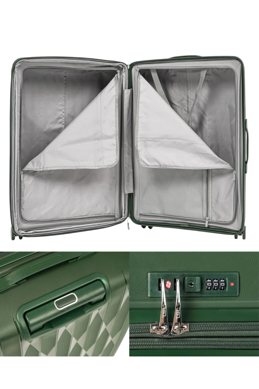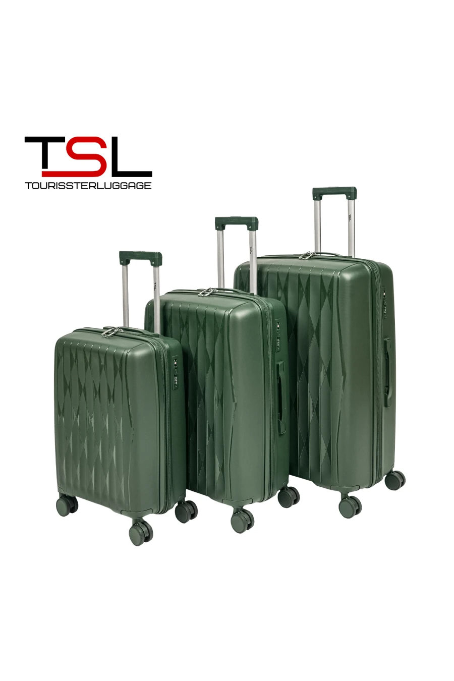 Комплект из трех чемоданов "TSL"-TOURISSTERLUGGAGE всех размеров из ударопрочного полипропилена отличаются от других своим функциональным наполнением внутри с двумя разделителями на молнии что при раскрывании не позволит вещам вываливаться из отделений. Левое отделение имеет текстильный ремень для стягивания багажа. Множество карманов на правой перегородке выполняют роль органайзера- добавлено влагозащищенное отделение для документов. Выдвижная телескопическая ручка выполнена из авиационного алюминия - что придаёт высокую прочность и снижает вес чемодана. Основная молния закрывания отделений имеет 2-х рядную структуру витков пластика- что делает невозможным непроизвольное открытие чемодана во время транспортировки и перегрузки. Все чемоданы - независимо от размера имеют расширение по кругу- что добавляет 20% дополнительного пространства для ваших вещей. Закрывание чемодана осуществляется на кодовый замок с функцией TSA.
