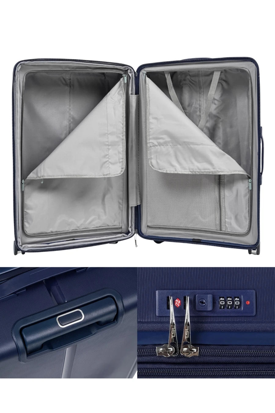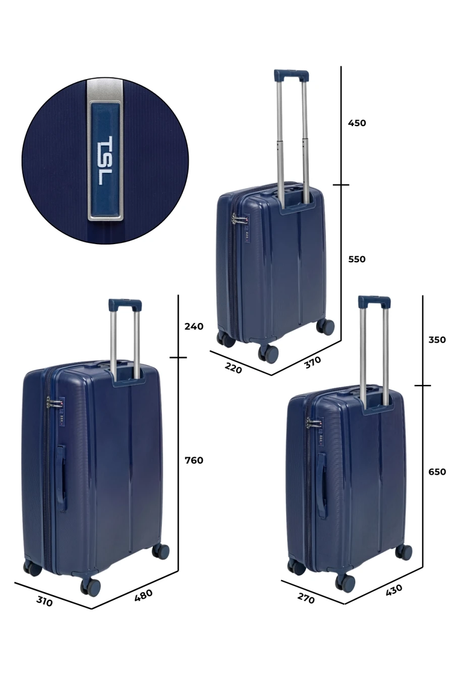 Комплект из трех чемоданов "TSL"-TOURISSTERLUGGAGE всех размеров из ударопрочного полипропилена отличаются от других своим функциональным наполнением внутри с двумя разделителями на молнии что при раскрывании не позволит вещам вываливаться из отделений. Левое отделение имеет текстильный ремень для стягивания багажа. Множество карманов на правой перегородке выполняют роль органайзера- добавлено влагозащищенное отделение для документов. Выдвижная телескопическая ручка выполнена из авиационного алюминия - что придаёт высокую прочность и снижает вес чемодана. Основная молния закрывания отделений имеет 2-х рядную структуру витков пластика- что делает невозможным непроизвольное открытие чемодана во время транспортировки и перегрузки. Все чемоданы - независимо от размера имеют расширение по кругу- что добавляет 20% дополнительного пространства для ваших вещей. Закрывание чемодана осуществляется на кодовый замок с функцией TSA.