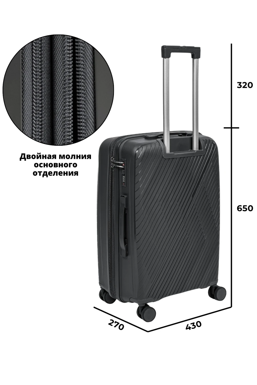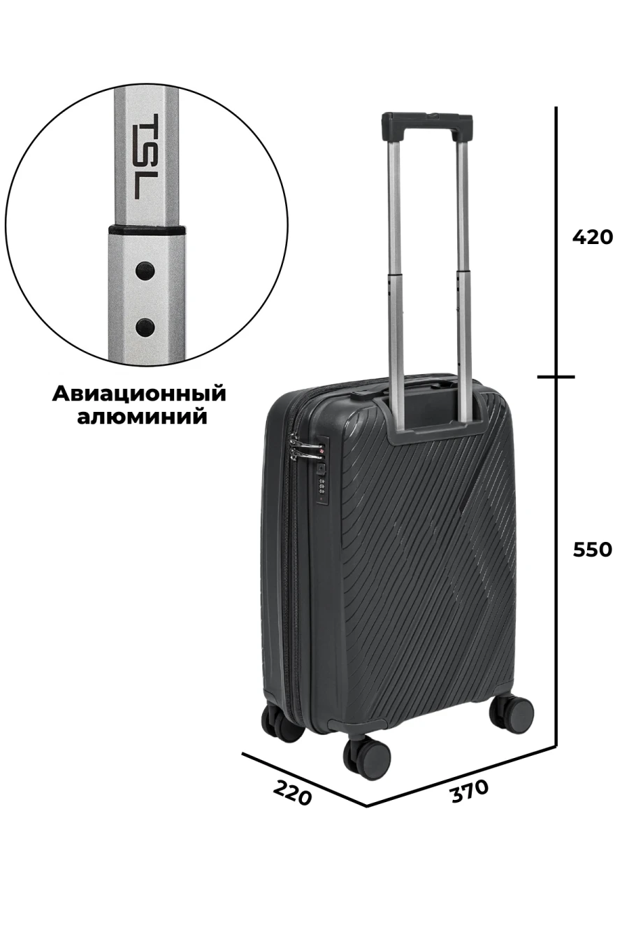 Чемодан TSL 2-039-03К темно-серый